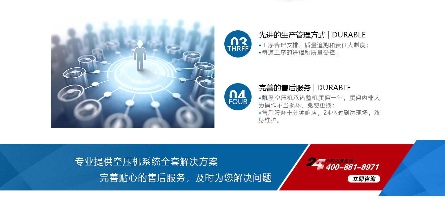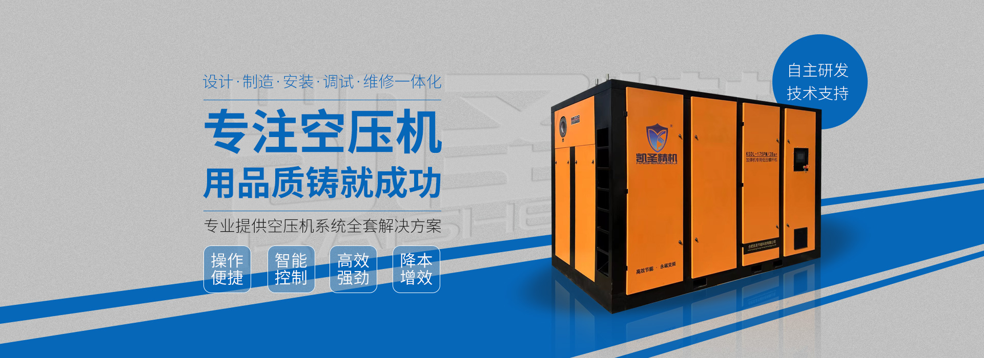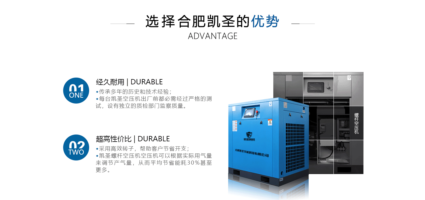 合肥凱圣節(jié)能科技有限公司是從事永磁變頻螺桿壓縮機系統(tǒng)的設(shè)計、制造、安裝、調(diào)試、維修與一體的公司。 在多年的螺桿空壓機研發(fā)與推廣歷程里,凱圣聚集和培養(yǎng)了大量壓縮機技術(shù)設(shè)計和管理人員,迅速發(fā)展成為集研究、生產(chǎn)、銷售、服務(wù)等環(huán)節(jié)為一體、嚴格按照標準執(zhí)行的企業(yè),公司成立開始,即以滿足客戶的實際需求為己任,大力開拓國內(nèi)外節(jié)能型空壓機市場,并始終保持創(chuàng)新精神,全力研發(fā)更為節(jié)能的螺桿式空壓機,努力站在空壓機節(jié)能領(lǐng)域的排頭位置。 應(yīng)用范圍:公司產(chǎn)品廣泛應(yīng)用于機械、輕工、紡織、食品、石油、化工、冶金、礦山、電力、城建、醫(yī)學(xué)研究和科研等各行業(yè)中,將為節(jié)約能源做出巨大貢獻。公司秉承“信譽至上,...